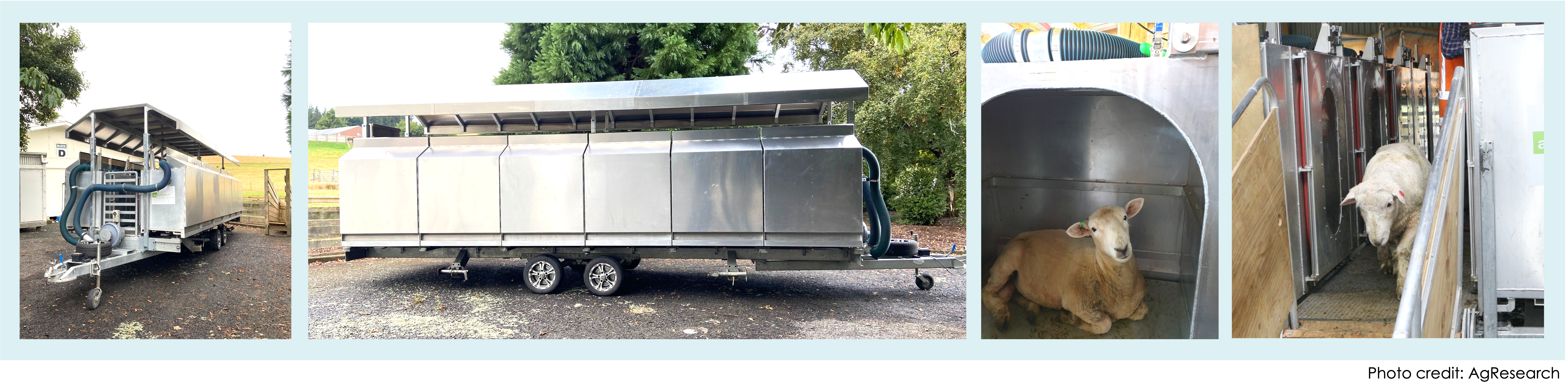 AgResearch has multiple trailers with small portable accumulation chambers (PAC) that estimate daily methane emission for individual sheep. In this way, breeders can have their sheep measured on their own farm. Trailers are located in both the North and South Islands.